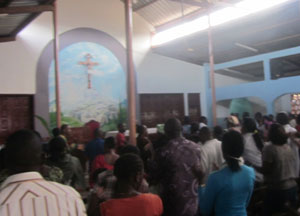 Placée sous le thème : « Paroisse Sainte Anne d’Obili: Une famille où l’on se connaît et où on s’aime», la célébration du 20ème anniversaire de notre Paroisse a été lancée le jeudi 13 Octobre lors de la messe de 18h présidée par le Père Constant AMOUSSOUGA SM, Curé de la Paroisse. Ainsi tout un mois durant, notre paroisse sera en marche avec divers activités et événements vers le dimanche 13 Novembre 2011 où lors d’une messe dominicale, réunis en une seule famille, nous allons rendre grâce au Seigneur pour l’âge de la maturité accordée à notre Paroisse. Il faut être aveugle pour ne pas remarquer que notre Paroisse a entamé une marche vers un nouvel horizon. Rien que les travaux en cours au sein de la chapelle nous en disent plus. Petit à petit, les paroissiens découvrent ce que seront leurs symboles identitaires dans les années à venir : la peinture sur les murs de la chapelle qui est entrain d’être refaite, l’image dans le sanctuaire qui a été modifié, et plus encore, l’image de notre Sainte Patronne (Sainte Anne, mère de la Vierge Marie) sur le fronton de la porte principale de la chapelle, comme pour la laisser nous accueillir à chaque fois que nous allons à la chapelle et nous introduire dans le Saint des saints, Jésus-Christ, réellement présent dans le Saint Sacrement qui sera désormais exposé 24h sur 24h dans un oratoire particulier qui va voir le jour au sein de la chapelle. |