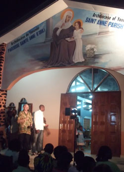 Quant-à la célébration du 20ème anniversaire de notre paroisse, le Comité chargé de la fête des récoltes 2011 a rendu public dimanche dernier les fruits de nos collectes pour cette année ; il apparaît clairement que notre paroisse assume grandement l’âge de la maturité, un seul mot … Les autres manifestations se poursuivent, on peut noter entre autre les veillées de prière, la grande soirée gastronomique et culturelle, la marche sportive et le tournoi de football. Il faut aussi rappeler que l’apothéose a été renvoyé au samedi 24 décembre 2011, ainsi notre paroisse fêtera son 20ème anniversaire juste un jour avant la célébration de la naissance de notre Seigneur Jésus. En plus notre paroisse a accueilli il y a quelques jours la croix du Synode diocésain des jeunes en tournée dans l’Archidiocèse : simple coïncidence avec la célébration du 20ème anniversaire ou alors clin d’œil de la part de Dieu ? Ne dit-on pas souvent : « petit à petit, l’oiseau fait son nid », notre paroisse est en train de traverser une étape importante de son histoire et a besoin de chacun de nous pour être davantage belle spirituellement, matériellement et socialement. Que l’Esprit Saint continue au sein de notre paroisse cette belle œuvre qu’il a su si bien commencé afin que par l’intercession de Sainte Anne, nous paroissiens, puissions être aux yeux du monde et particulièrement aux yeux de toute la population d’Obili « sel de la terre et lumière du monde ». |